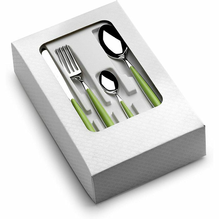 Sastav: 6 stolnih žlica, 6 stolnih vilica, 6 stolnih noževa, 6 žlica za kavu.