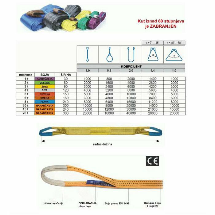 Boje poliesterskih priveznica su određene standardom - određena boja je usklađena s nosivošću priveznice a nosivost