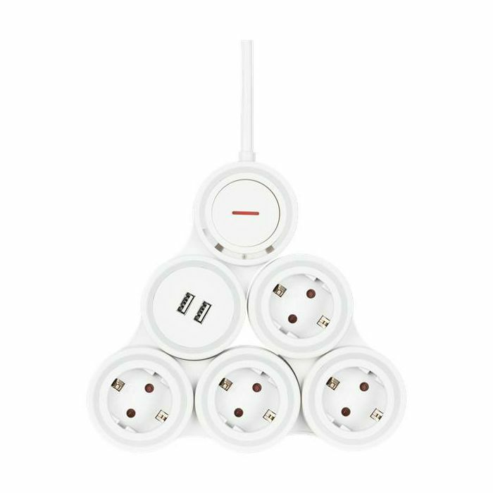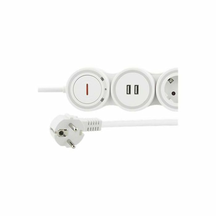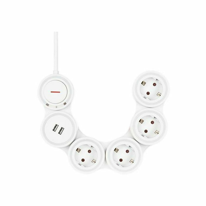 DELTACO Fleksibilna razvodna traka s 4 utičnice, 1,4 m, 16A 3500W, 2x USB-A, bijela, kabel 1,4 m, bijeli