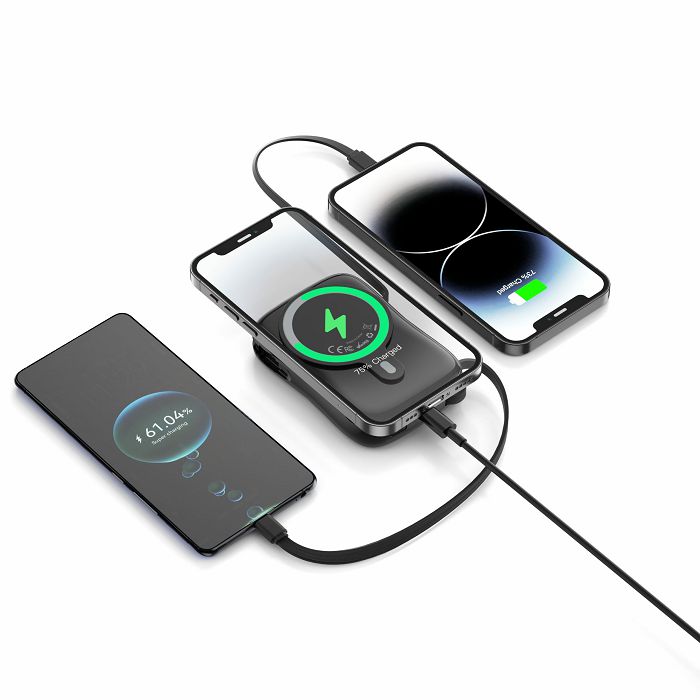 Magsafe bežični power bank C1020W 10000mAh, podržava bežično (15W) i žičano (20W) punjenje kompatibilnih iPhone i Android uređaja. Integriran Type C i iPhone Lightning kabel, te Magsafe mogućnost bežičnog punjenja.Specifikacije: