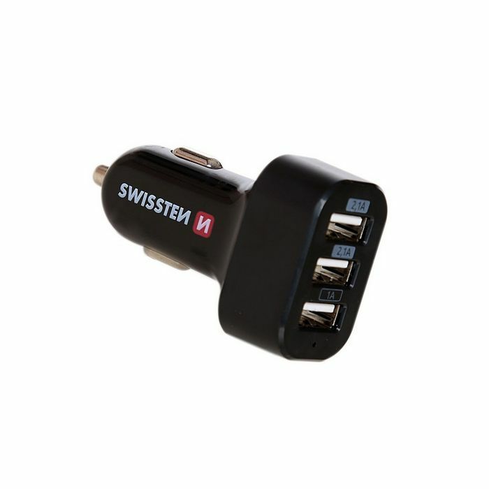 PUNJAČ ZA AUTO SWISSTEEN 3 x USB 12-24V CRNI