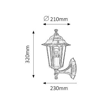 MOGUĆNOSTI PROIZVODA Kategorija proizvodaVanjska rasvjeta VrstaVanjske zidne svjetiljke Stil svjetiljkeKlasična Preporučena prostorija za uporabuterasa, zid kuće IP zaštitaIP43 Boja svjetiljkeantično zlato Materijal svjetiljkemetal Boja sjeni