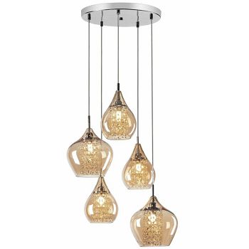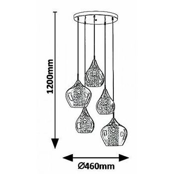 Fizičke karakteristike Boja:krom | jantar | kristal Materijal:metal | stakleni kristal | tekstil Promjer (mm):460 Visina (mm):1200 Izvor svjetla Broj izvora svjetlosti:5 Grlo / Zaglavlje:G9 Pribor izvora svjetlosti:ne Snaga (W):40