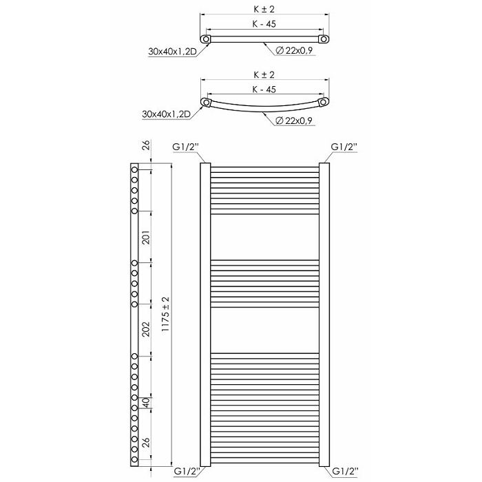 TermaBad R01 1175x500 mm elegantni i učinkoviti kupaonski radijator ravnih linija. Idealno je rješenje za kupaonske prostore jer osim osnovne namjene grijanja prostora, može služiti i kao držač ručnika te zauzima minimalno prostora.