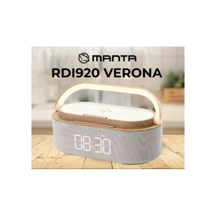 Sat, budilica, zvučnik, radio prijemnik i bežični punjač MANTA RDI920 VERONA s izvrsnim zvukom vaš je novi suputnik pri slušanju omiljenih pjesama, bilo gdje i bilo kada!