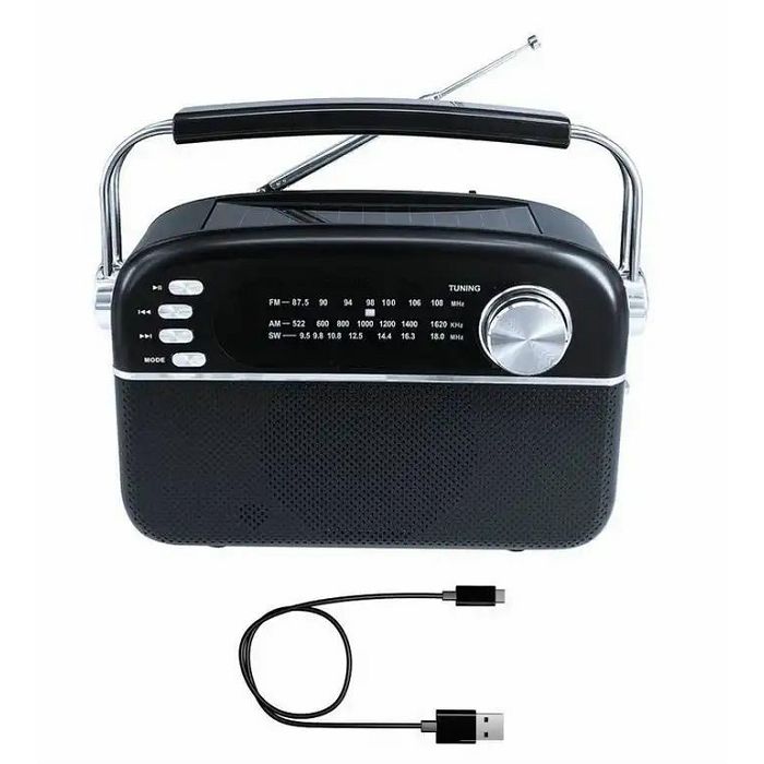 RADIO MANTA SOLARNI, UGRAĐENA BATERIJA, BT, MP3, FM-AM-SW, CRNI RDI918B
