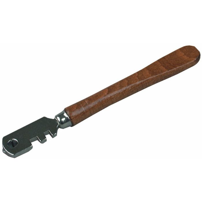 U klasičnom obliku s drvenom drškom s ravnim krajem, rozeta je opremljena sa 6 reznih kotača od legiranog čelika, kut 135 ° - pogodan za rezanje stakla. 3 - 10 mm.