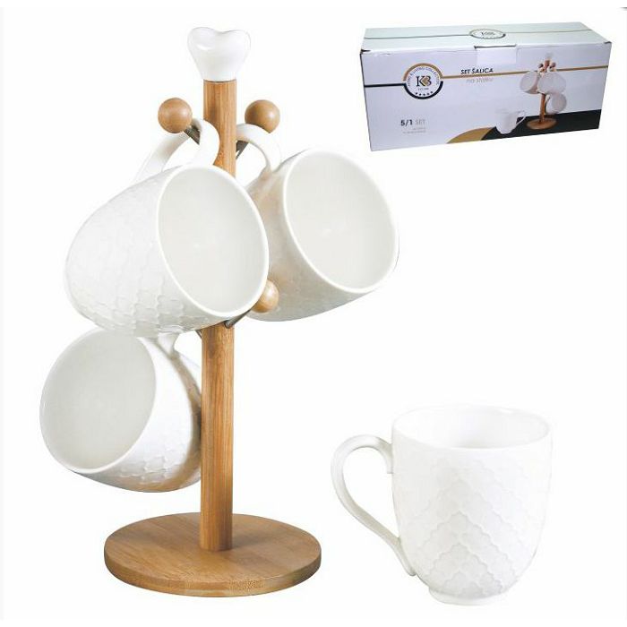 Ovaj set šalica nije samo estetski privlačan, već i izuzetno funkcionalan. Drveni stalak omogućuje praktično pohranjivanje šalica, čineći vaš prostor urednim i organiziranim. Idealan je za jutarnje trenutke uz kavu ili čaj, kao i za opuštajuće večern
