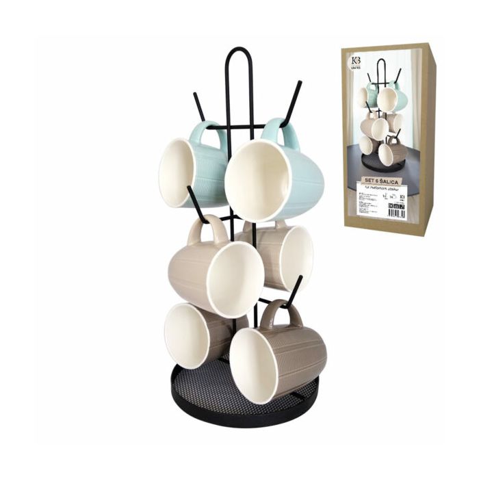 Šalice za kavu SET 200ml porculanske 6/1,na met.stalku 37.5cm