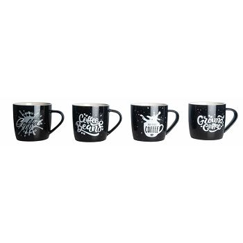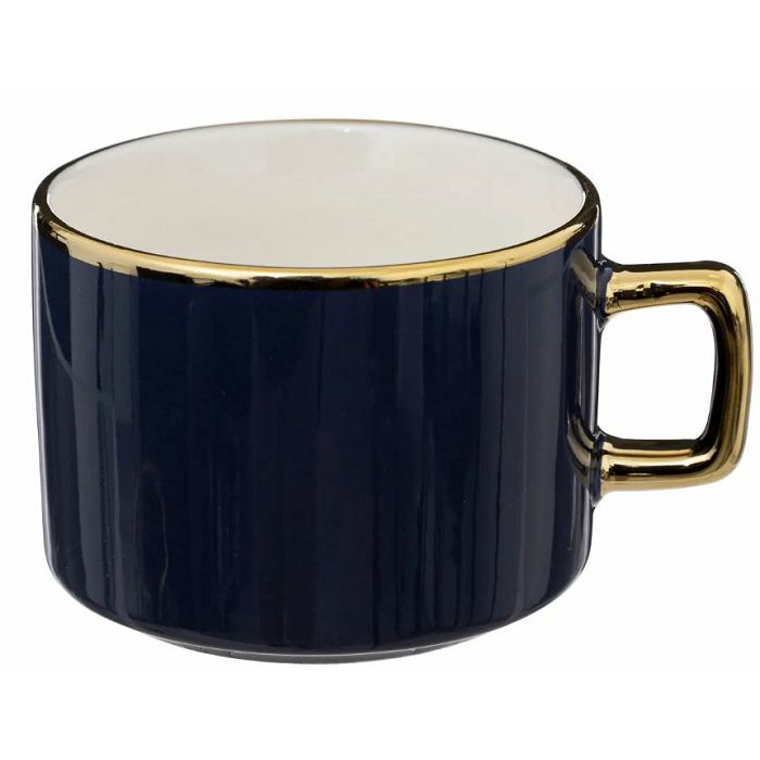 SET ZA ČAJ PORCULAN 400+260 ML -CRNO-BIJELI I SREBRNA LINIJA