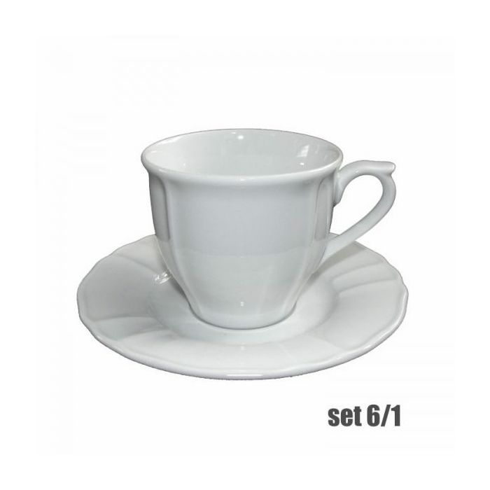 ŠALICE SET S TANJURIĆIMA ROCOCO 25 CL 6/1 BIJELE PORCULAN