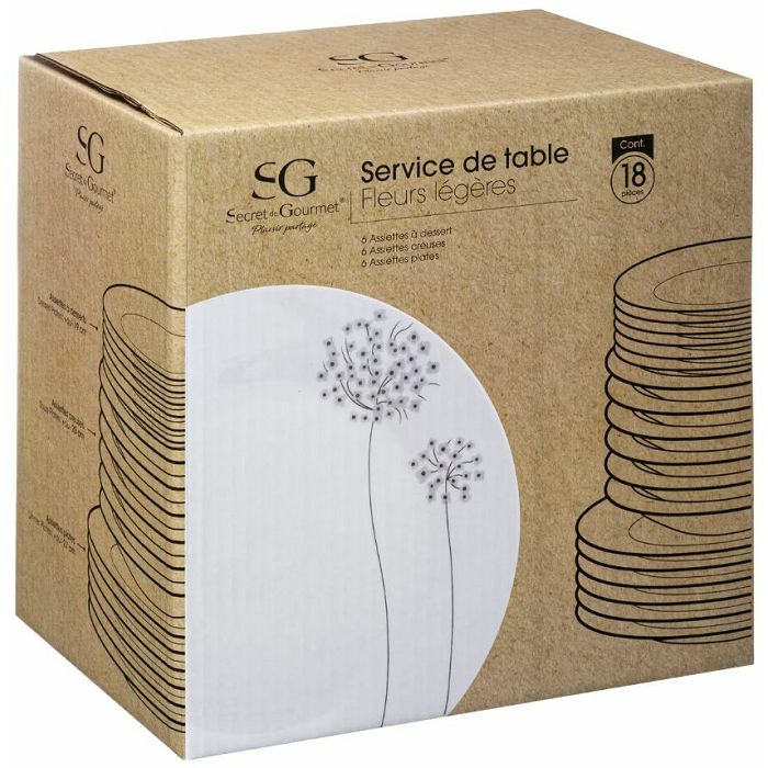 Set uključuje 18 dijelova za svaki dobro postavljen stol, od tanjura za večeru i tanjura za juhu do tanjura za desert.