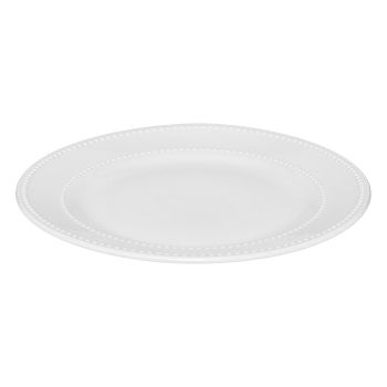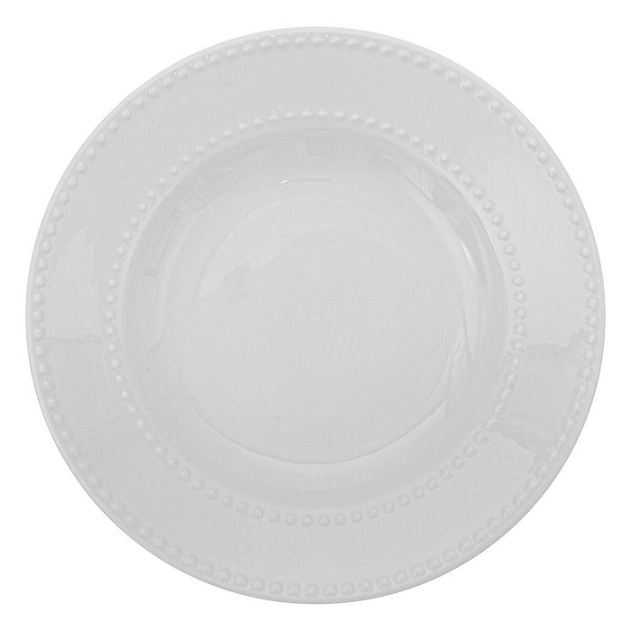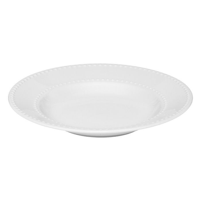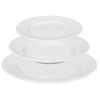 Servis za jelo Athena od 18 tanjura od bijelog porculana s reljefom u obliku krila na rubu.