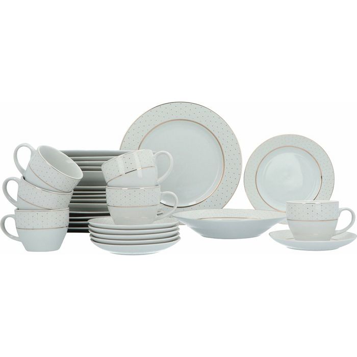 SERVIS ZA JELO PORCULANSKI ALICE 30 DIJELNI SA ŠALICAMA – ZLATNI DEKOR