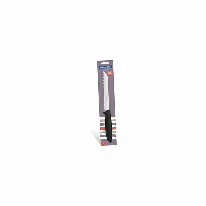 Nož za kruh Plenus 20 cm izrađen od visokokvalitetnog nehrđajućeg čelika sa drškom od crnog polipropilena.