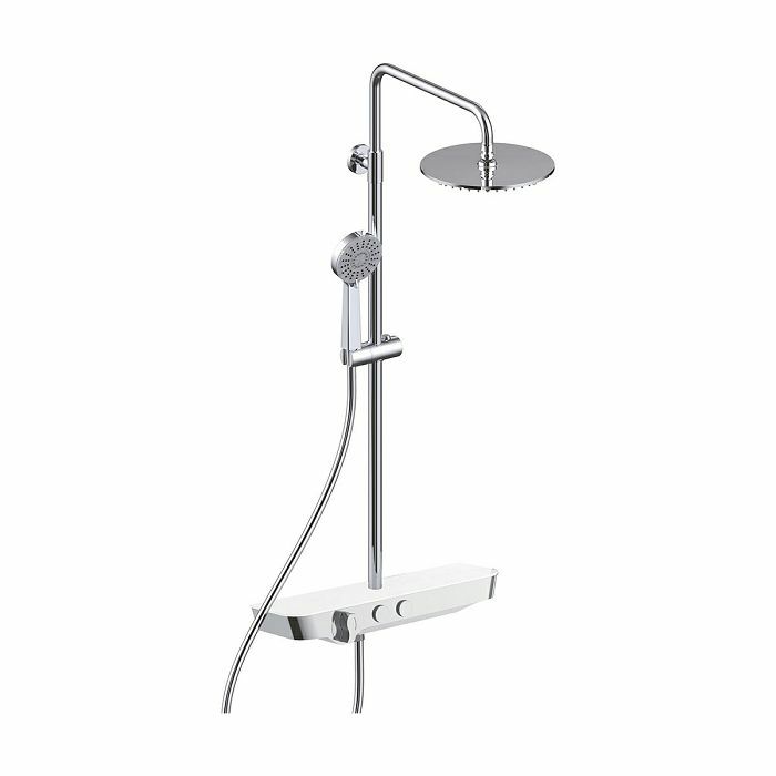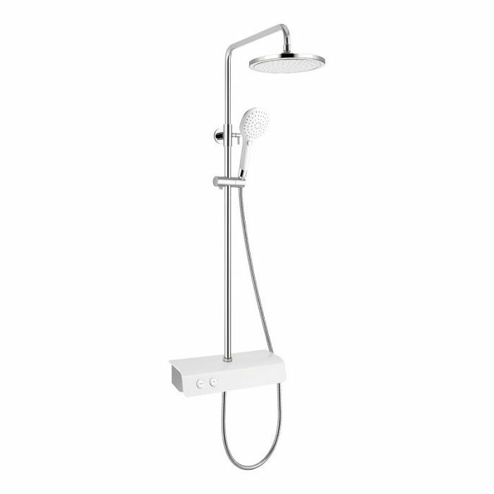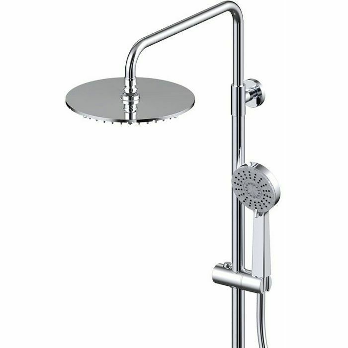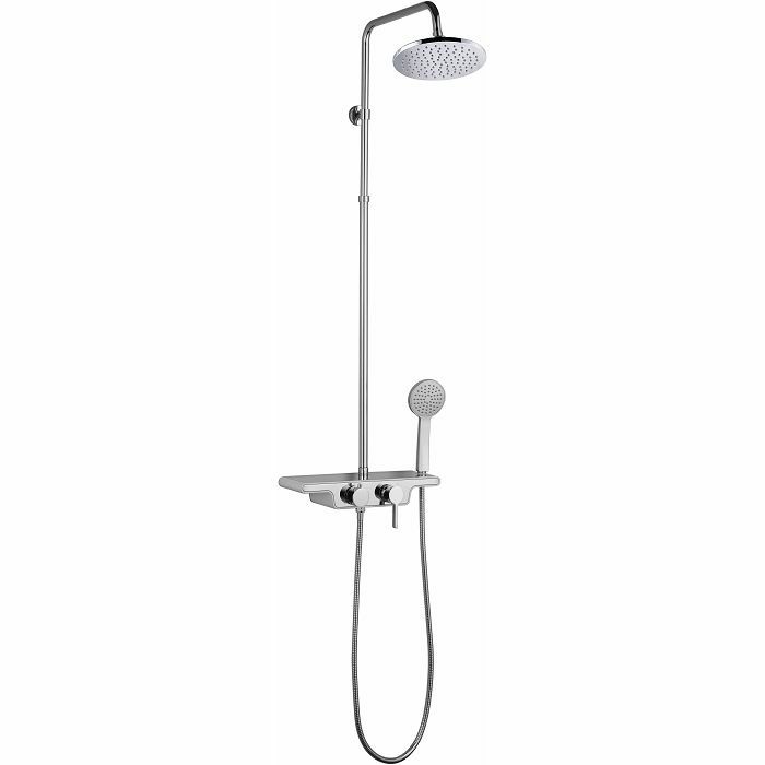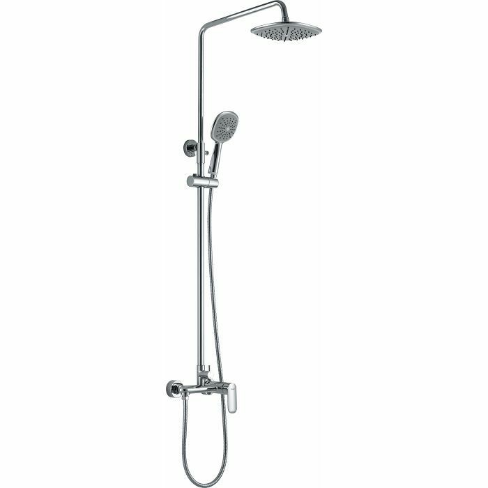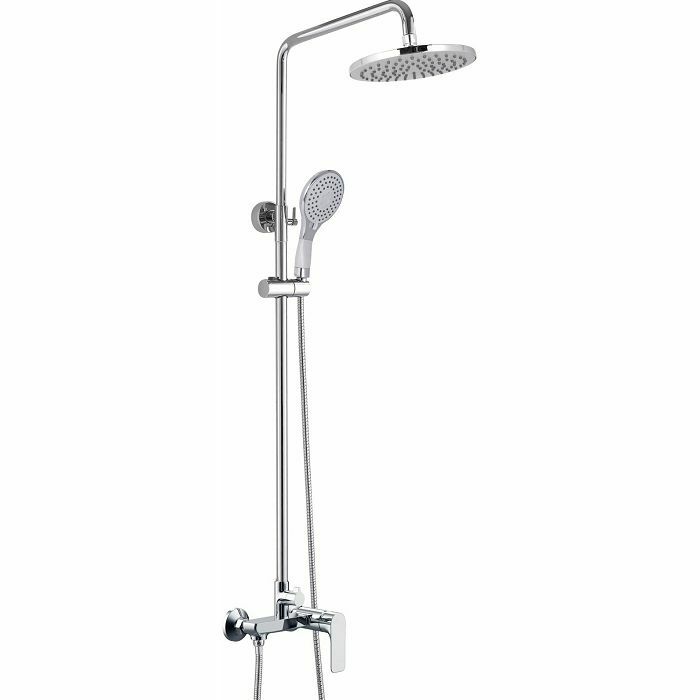 Voxort Mila sustav tuša sastoji se od miješalice s prekidačem, zidne montaže, ruže za tuširanje fi 20 cm s okretnim spojem, duljine izljeva 46,6 cm s glavom za tuširanje. Nosač glave tuša s cijevi za tuširanje podesiv po visini. Sustav tuša ima mode