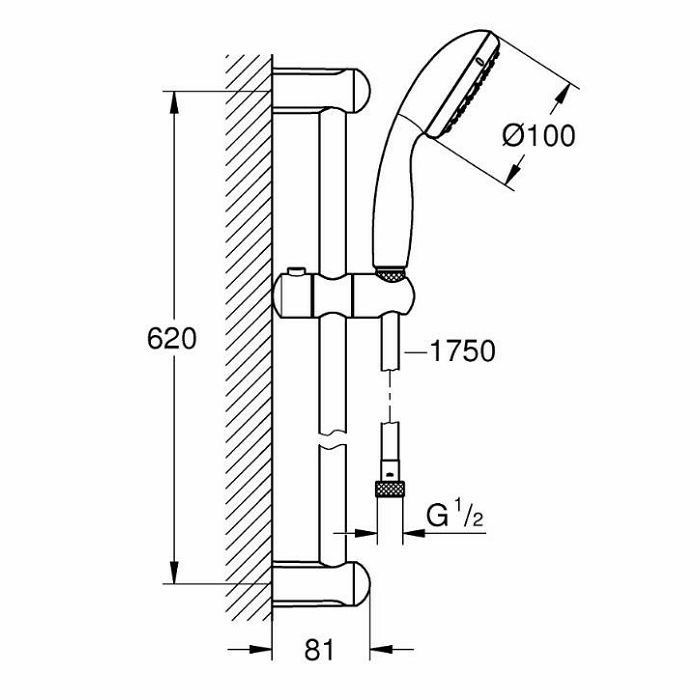 sastoji se od: ručni tuš, šipka za tuš, crijevo za tuš, klizač