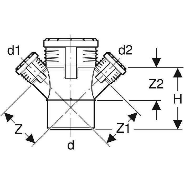 Geberit Silent-PP dvostruka lučna račva 87,5°: d=110mm, d1=110mm, d2=110mm (390.566.14.1)