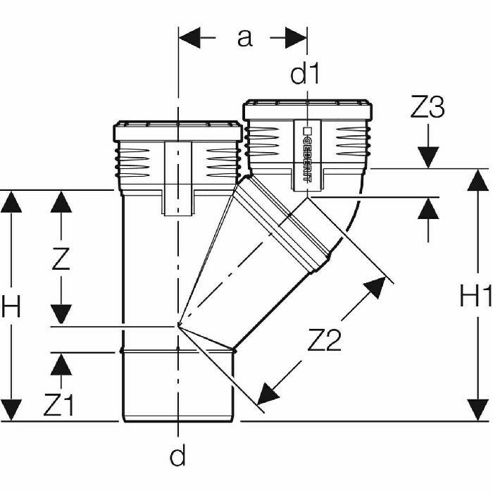 Geberit Silent-PP račva 45°: d=75mm, d1=75mm (390.333.14.1)