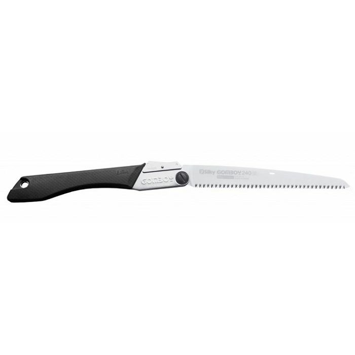 Silky Gomboy je preklopna ručna pila s oštricom duljine 240 mm sa zubcima srednje veličine, 10 komada na 30 mm.