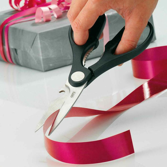 Škare se sastoje od oštrice od nehrđajućeg čelika i integriranog otvarača za boce.