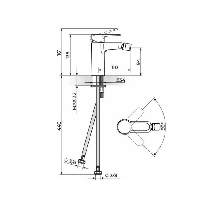 Voxort Gala moderna jednoručna slavina za umivaonik visokotlačnog tipa. Dimenzije proizvoda su visoke 15,5 cm i duboke 16 cm. Dolazi u kompletu s priborom za montažu i dvije priključne cijevi duljine 3/8 "x 35 cm, bez sifona. Jednoručna miješalica Vo