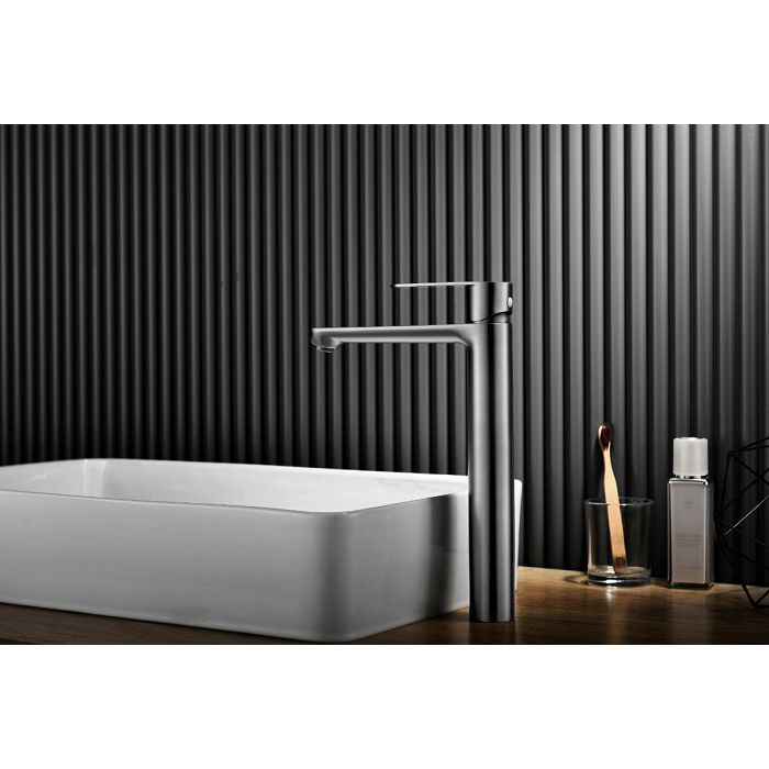 Slavina za umivaonik Venice izrađena od visokokvalitetnog nehrđajućeg čelika SS304 predstavlja savršen spoj funkcionalnosti i modernog dizajna. S mat sivom završnom obradom, ova slavina ne samo da je izdržljiva, već i stvara elegantan i sofisticiran