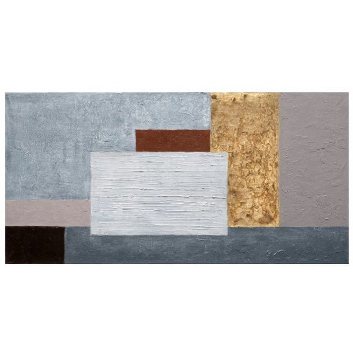 Platno zategnuto na drveni okvir, ručno oslikano. Površina slike prekrivena je velikom količinom boje.