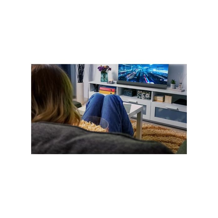 Uživajte u snažnijem i čišćem zvuku zahvaljujući 2.0-kanalnom sustavu koji podiže gledanje filmova, serija i vijesti na višu razinu. Pucketanje laserske paljbe, huk mase ili jasan govor — sve zvuči preciznije. EQ na