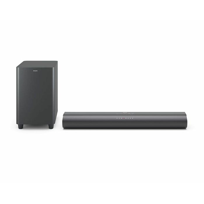 Uronite u akciju uz bogat i pun zvuk iz elegantnog i kompaktnog soundbar zvučnika koji se savršeno uklapa u vaš prostor. Uživajte u svakoj sekundi uzbuđenja svih sadržaja – od glazbe do dramatičnih filmova i sportskih sekvenci s brzom akcijom. Isku