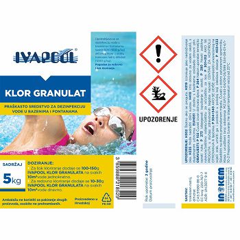 IVAPOOL Klor granulat je praškasto sredstvo sa 60% aktivnog klora za dezinfekciju vode u bazenima i fontanama.