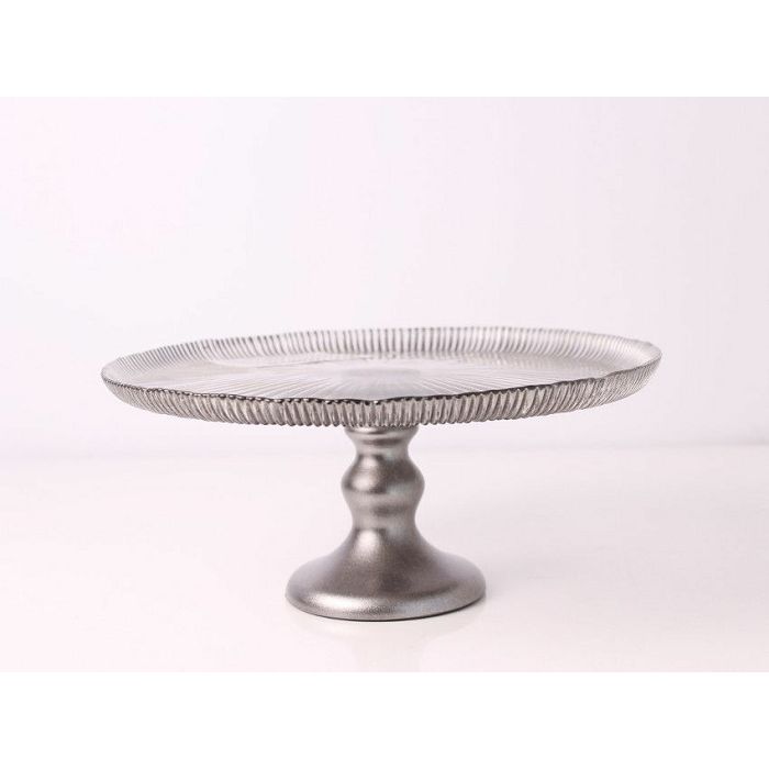 STALAK DEKORATIVNI S UZORKOM STAKLO 21CM-TRANSPARENT/SREBRNI