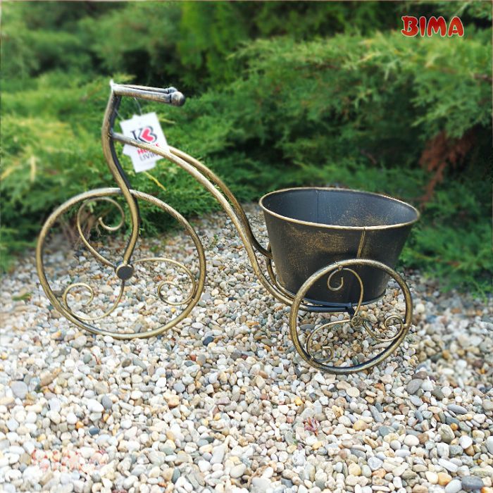 STALAK ZA CVIJEĆE TRICIKL 47x18x33 CM METALNI ANTIK ZLATNO-CRNI