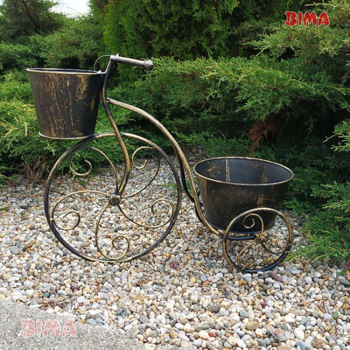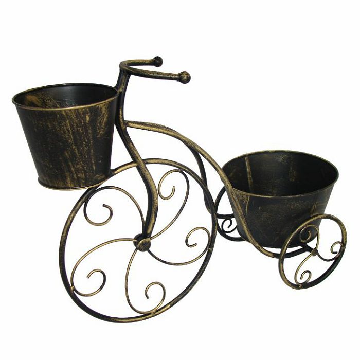 STALAK ZA CVIJEĆE TRICIKL 56x18x42 CM METALNI ANTIK ZLATNO-CRNI