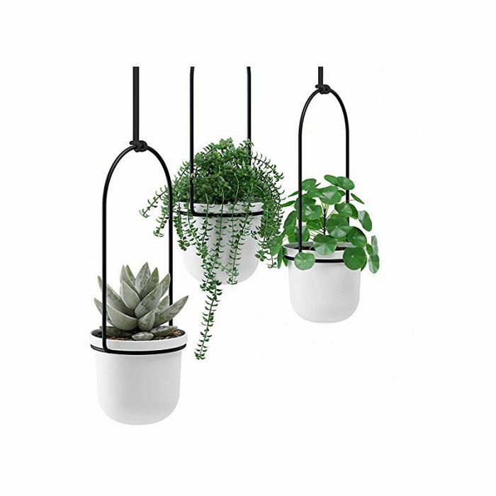 Komplet od 3 posude za cvijeće Umbra Potsy u bijeloj boji uređen je u glam stilu.