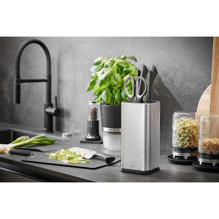 Stalak za noževe GEFU: 14 blok noževa s dodatnim prostorom za škare ili oštrilo.
