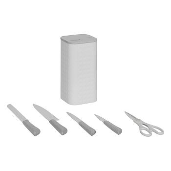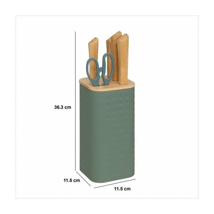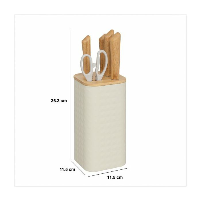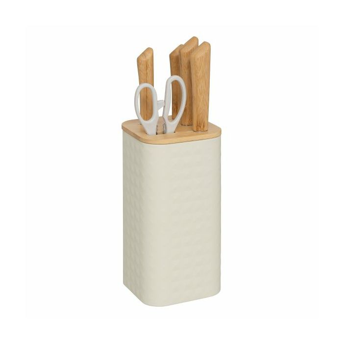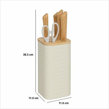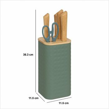 STALAK ZA NOŽEVE S 4 NOŽA I ŠKARAMA SENSIA 11,5X11,5X36,3CM BAMBUS/NEHRĐAJUĆI ČELIK RAZNE BOJE