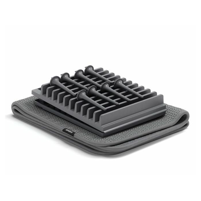 Stalak za posuđe UDry Peg marke Umbra omogućuje vam da njezin raspored prilagodite trenutnim potrebama. Zanimljivo je da:
