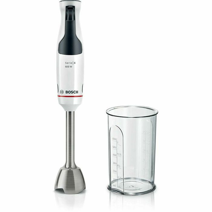 Štapni mikser BOSCH MSM4W210 ERGOMASTER snage 600 W s 4 oštrice za savršeno rezanje i fino miješanje. Dolazi s praktičnom posudom za miješanje/mjerenje za jednostavno mjerenje i miješanje malih