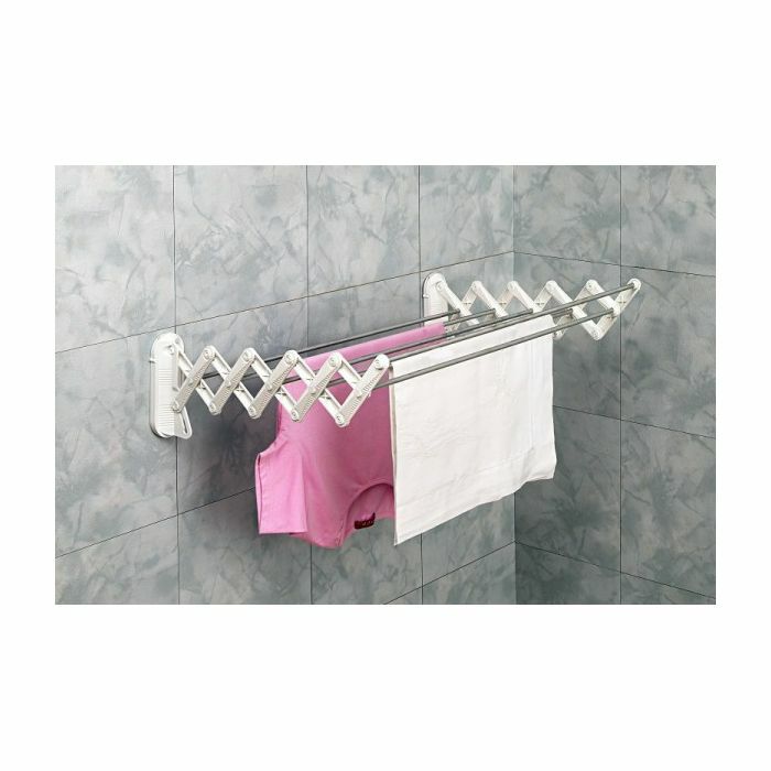 Elegantno kupaonsko zidno sušilo za rublje Telegant 70 je široko 70 cm. Njime će te uštedjeti prostor. Njegove linije za vješanje rublja u ukupnoj dužini iznose 3,6 metara. Ima i odvojenu krom vješalicu za ručnik. Idelano je za manje prostore.