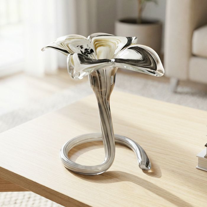 Murano tehnika čini svaki primjerak jedinstvenim, a oblik inspiriran cvijetom dodaje nježnost i vizualni interes u prostor.