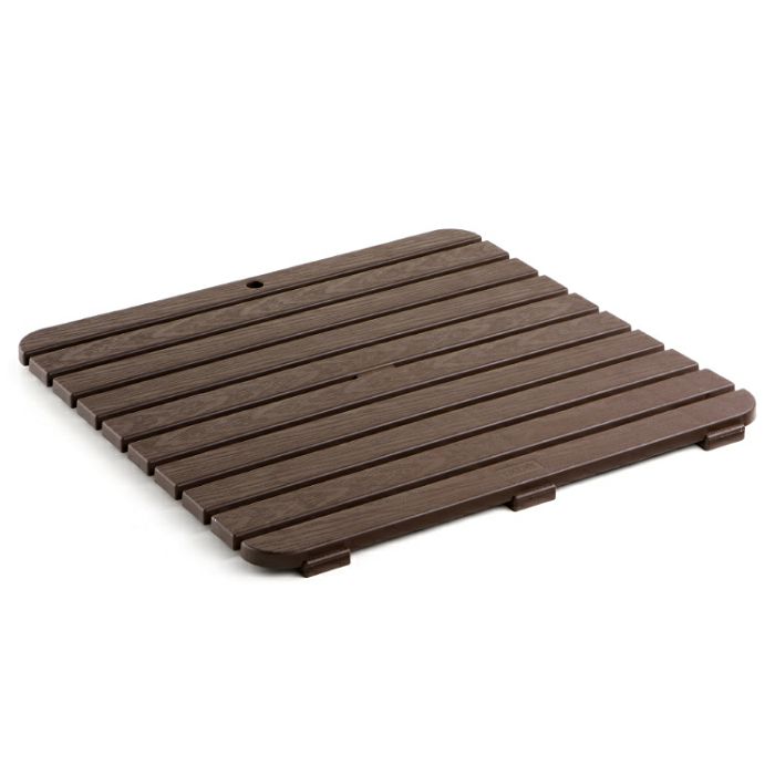 Polipropilenska podloga za tuš kabinu smeđe boje s dodatkom protiv UV zračenja. Zahvaljući protukliznoj podlozi i hrapavoj površini vrlo je praktična. Za maksimalnu stabilnost, podloga je opremljena gumenim jastučićima. Dimenzija: 55 x 3 x 55 cm.