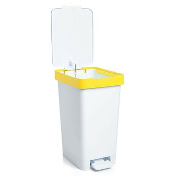 Bijela kanta za smeće ukrašena je praktičnim žutim okvirom koji će držati vreću za smeće na mjestu. Ima pedalu koja olakšava otvaranje poklopca za 90°. Pogodna za kombiniranje s ostalima kantama iz iste linije za što bolju reciklažu otpada. Izrađ