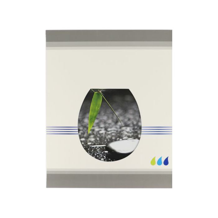 Punta cana daska za Wc crne pozadine, sa zelenim lišćem i sivim oblucima pristajat će u svaku kupaonicu, bijelih, crnih i sivih tonova.