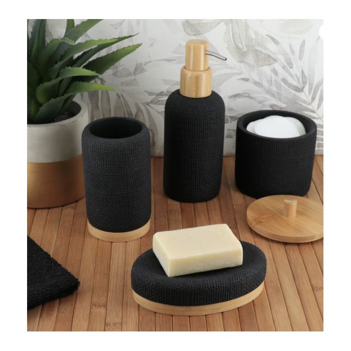 Kupaonska čaša Vittoria od poliresina crne boje sa bambus podlogom pruža sofisticiran i moderan izgled vašem kupaonskom prostoru. Izrađena od visokokvalitetnog poliresina, čaša je izuzetno čvrsta i dugotrajna, dok crna boja doprinosi elegantnom i kla