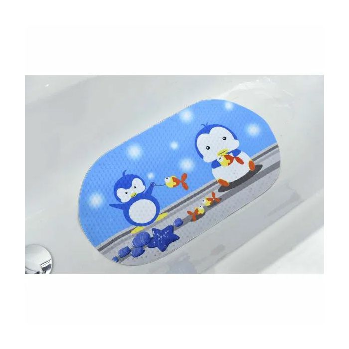 Podloga za kadu s uzorkom pingvina zbog koje će svako dijete bez problema pristati na kupanje. Ovalna podloga izrađena je od PVC-a i poliestera te je protuklizna zbog čega štiti od mogućih nezgoda. Dimenzija: 69×36 cm.