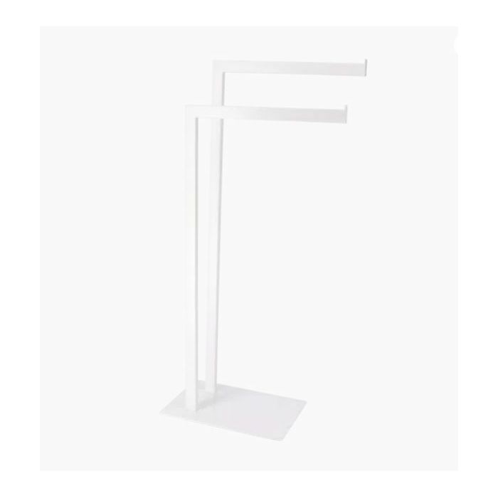 Držač ručnika s 2 prečke stat će na kraj neurednom odlaganju ručnika. Bijela boja estetski će upotpuniti dizajn svake kupaonice. Izrađen od izdržljivog metala. Dimenzija: 81x40x20 cm.