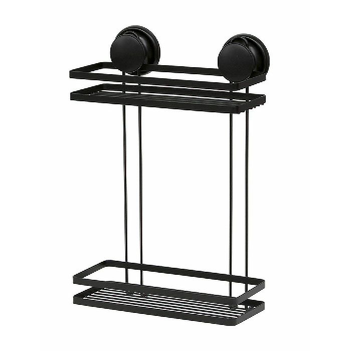 Dvostruka kutna košarica za tuš koja ima vakuum način rada. Klasične crne boje pa se može uklopiti u svaku kupaonicu.