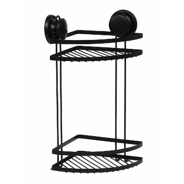 Dvostruka kutna košarica za tuš koja ima vakuum način rada. Klasične crne boje pa se može uklopiti u svaku kupaonicu.