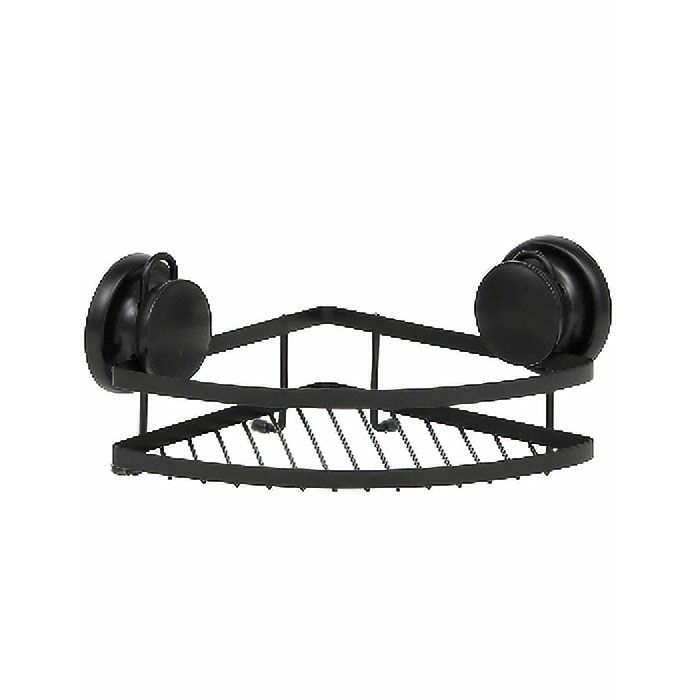 Metalna crna košarica predviđena za postavljanje u kut idealna je za odlaganje raznih kupaonskih potrepština.